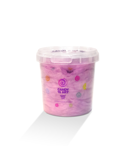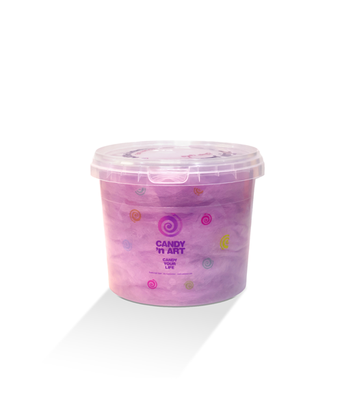 Freshly spun cotton candy packed in sealed tubs to keep it fluffy, flavorful, and ready to enjoy anytime.