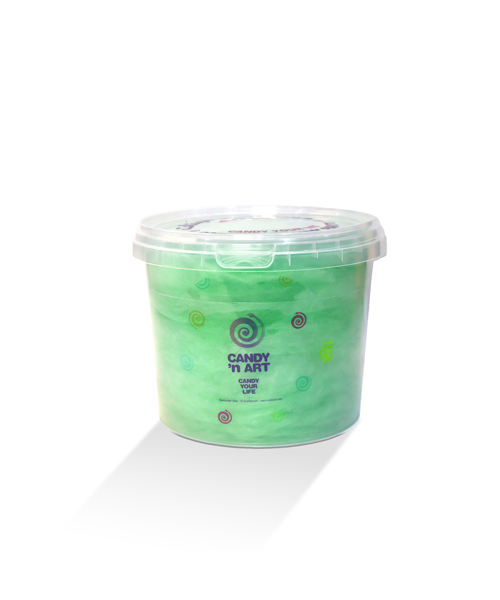 Freshly spun cotton candy packed in sealed tubs to keep it fluffy, flavorful, and ready to enjoy anytime.